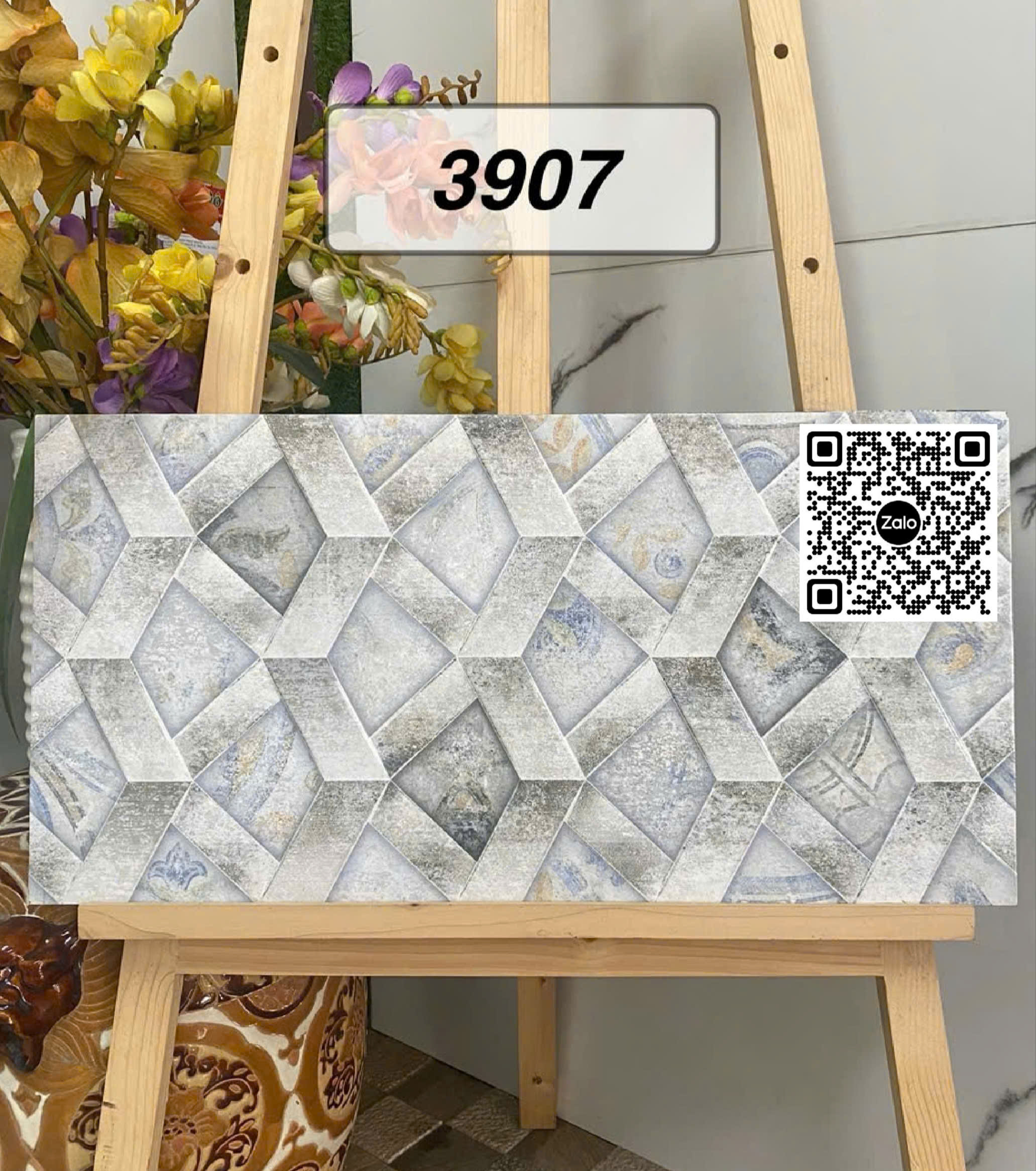 Gạch Men 30x60 Ốp Dán Trang Trí đá ghép xám 3907