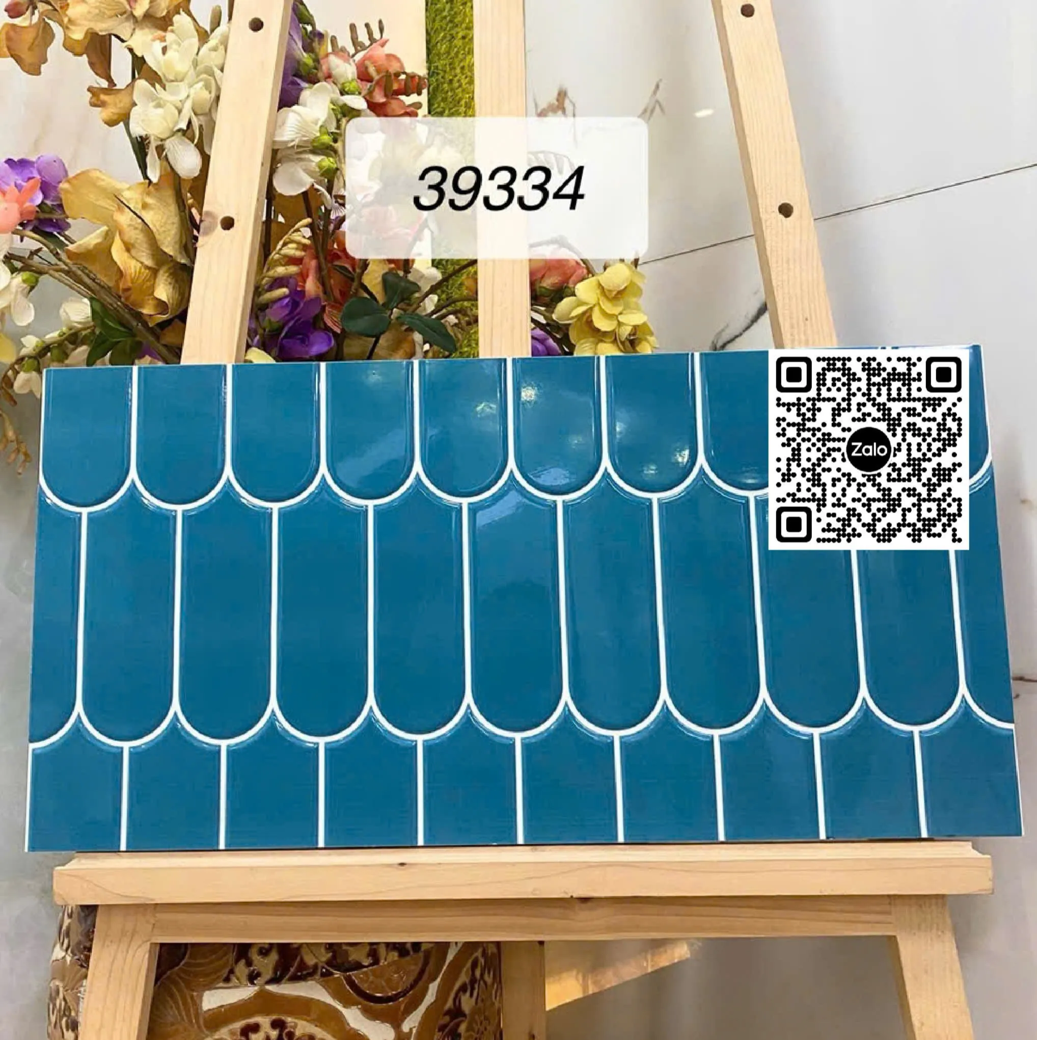 Gạch Men 30x60 Ốp Dán Trang Trí lông vũ xanh 39334