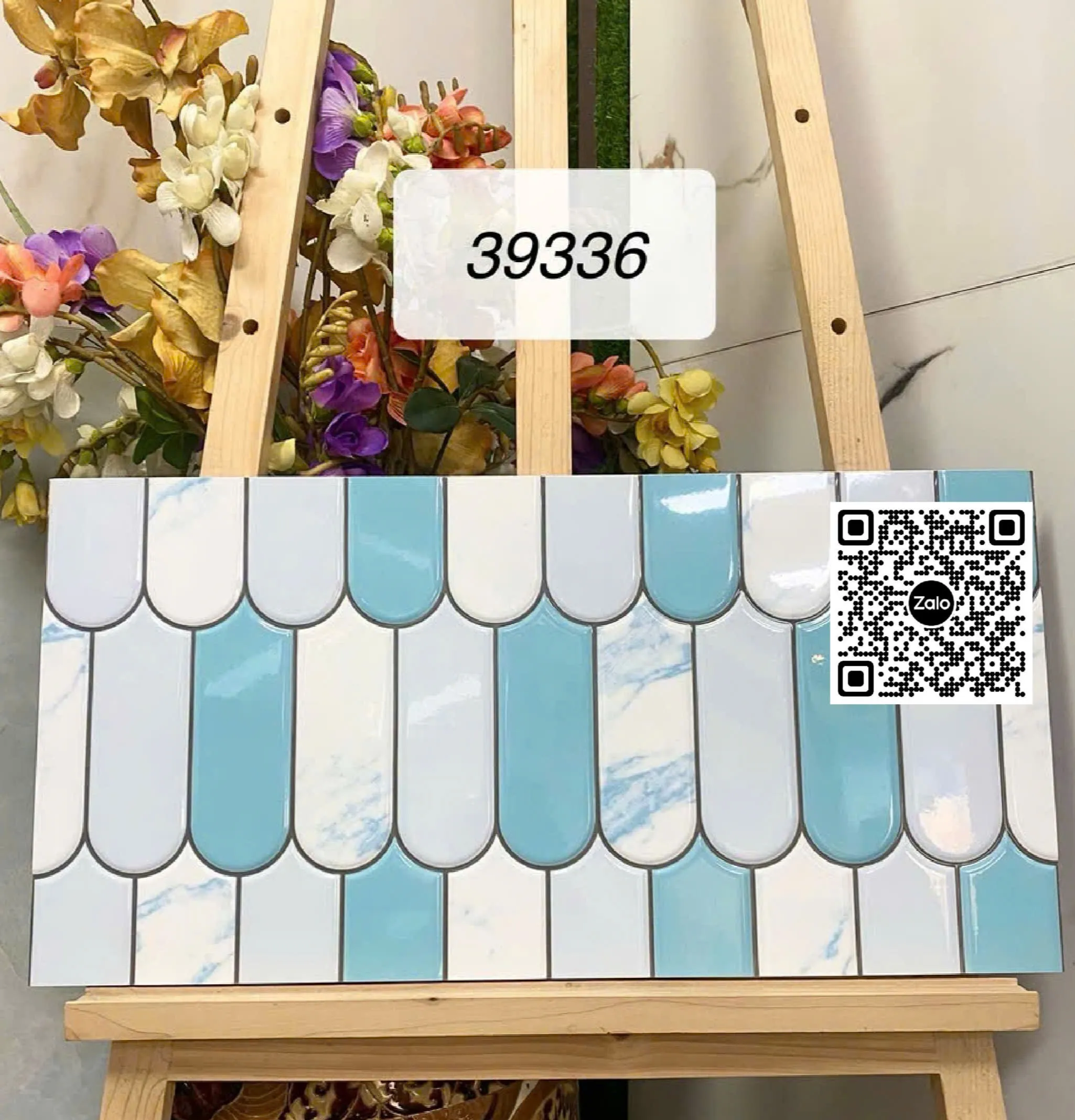 Gạch Men 30x60 Ốp Dán Trang Trí lông vũ xanh trắng