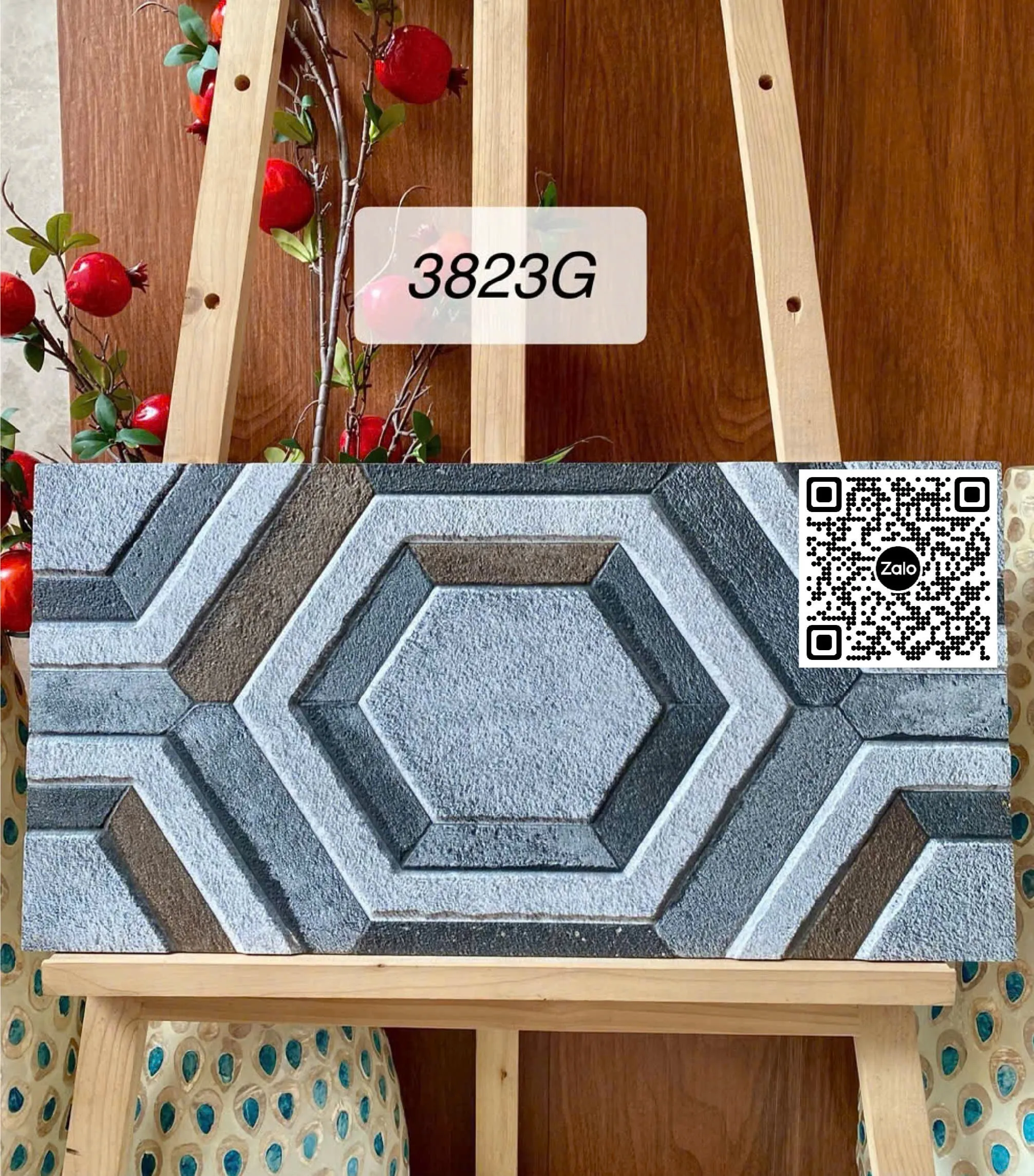 Gạch Men 30x60 Ốp Dán Trang Trí lục giác nâu xám