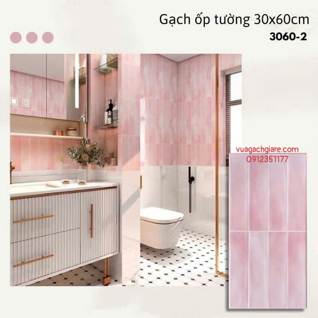 Gạch Men 30x60 Ốp Tường Trang Trí giả thẻ màu hồng