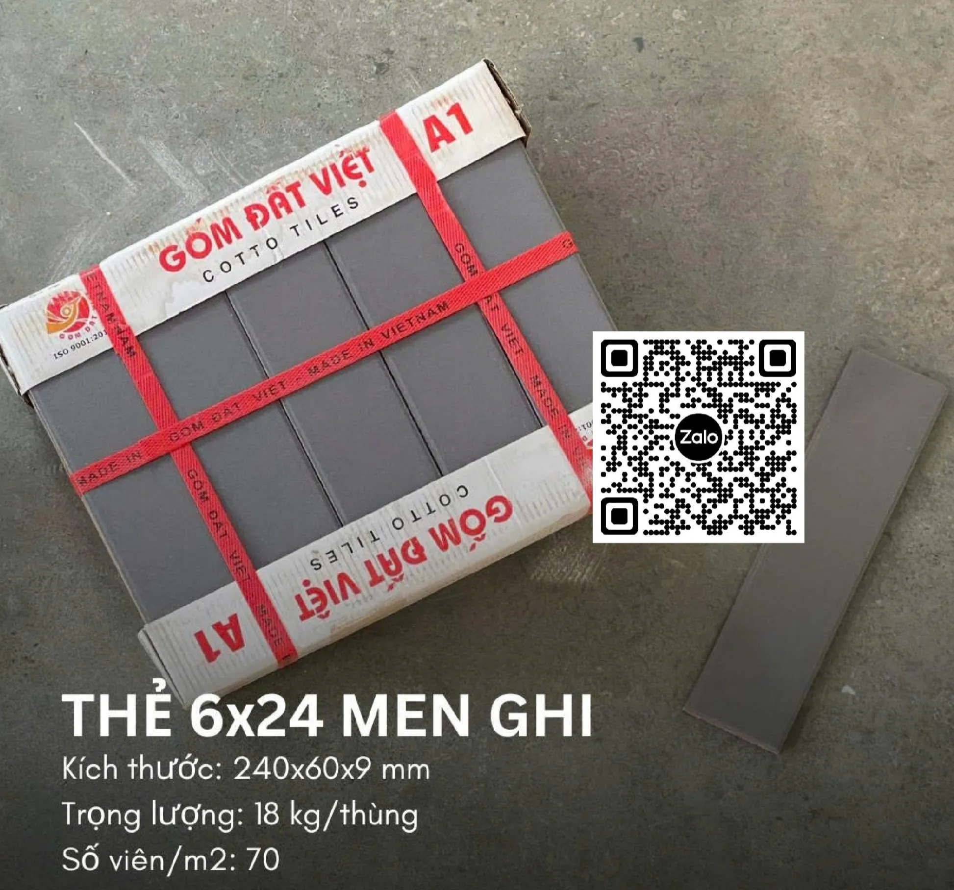 Gốm Thẻ Đất Việt 6x24 Ốp Dán Trang Trí màu xám