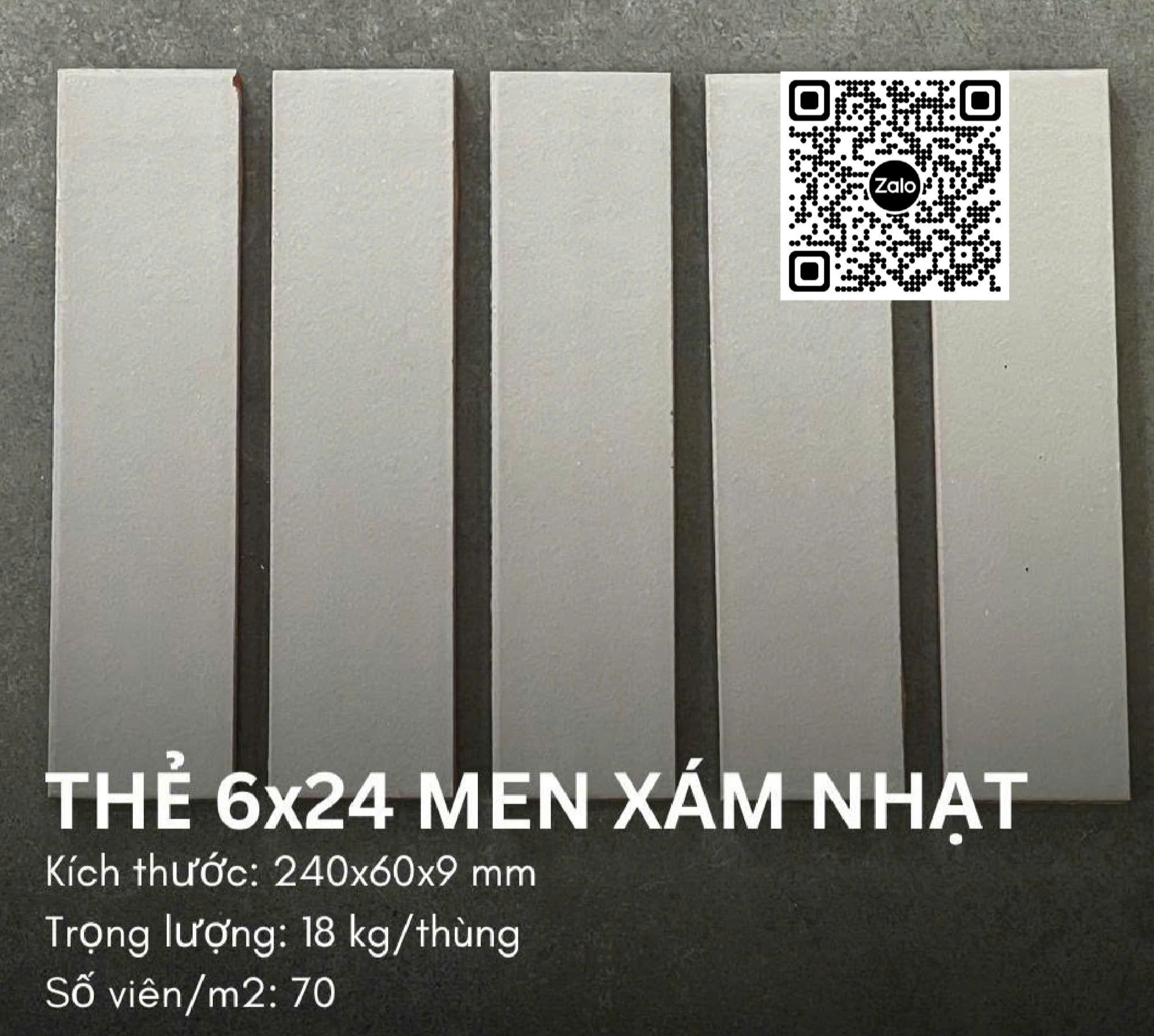 Gốm Thẻ Đất Việt 6x24 Ốp Dán Trang Trí men xám nhạt