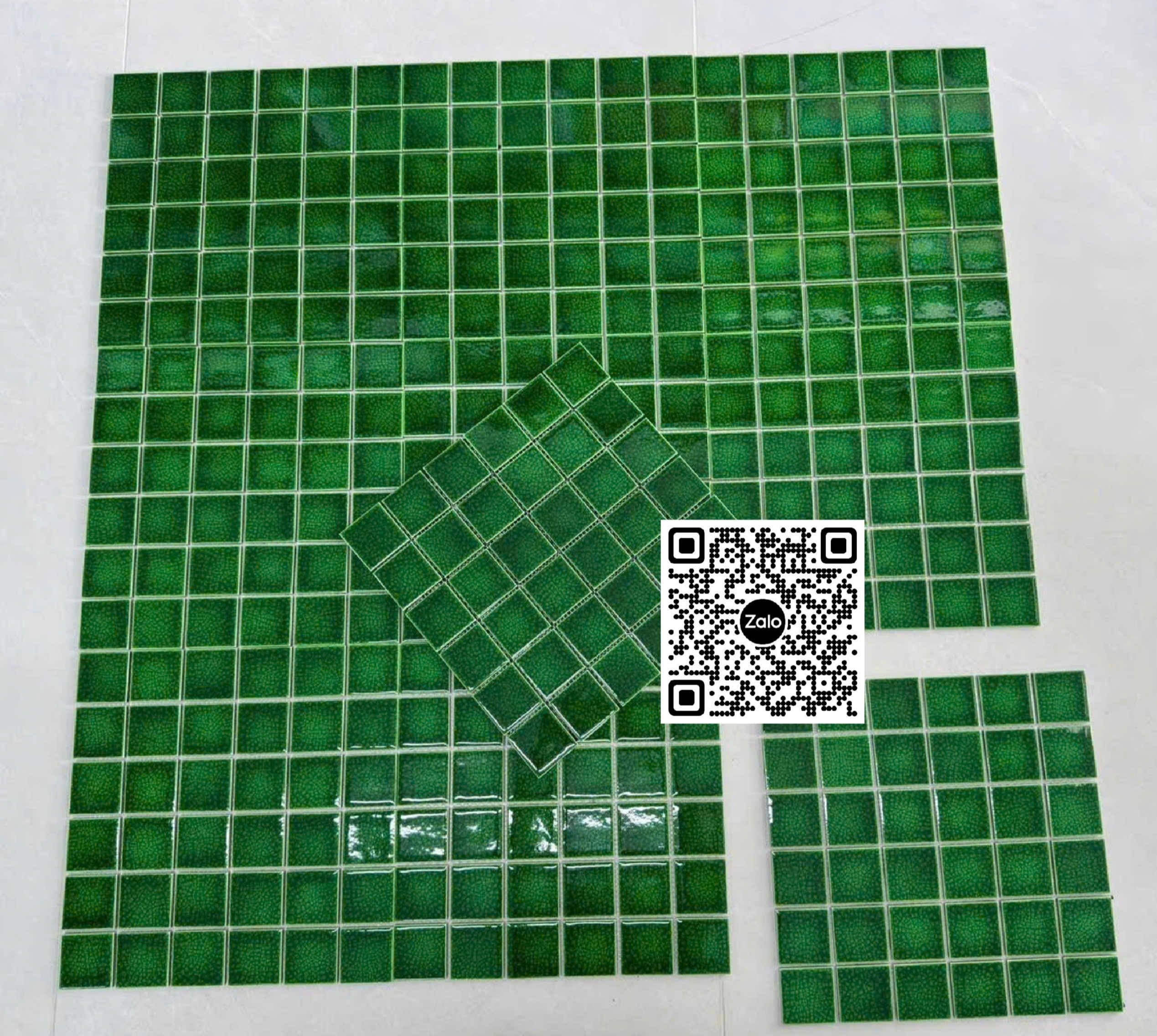 Gạch Mosaic 30x30 Ốp Dán Trang Trí xanh lá men rạn