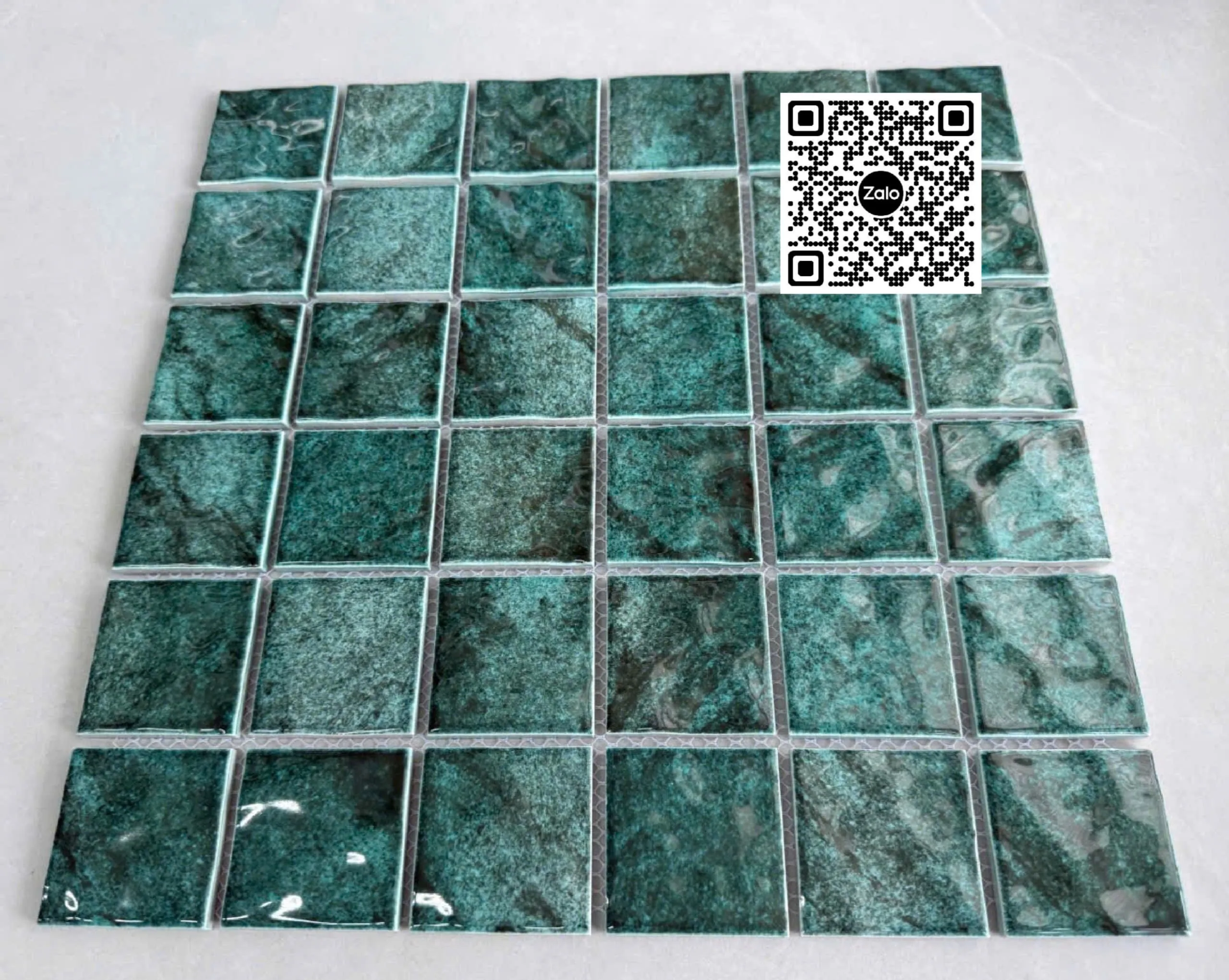 Gạch Mosaic 30x30 Ốp Dán Trang Trí xanh rêu gợn sóng