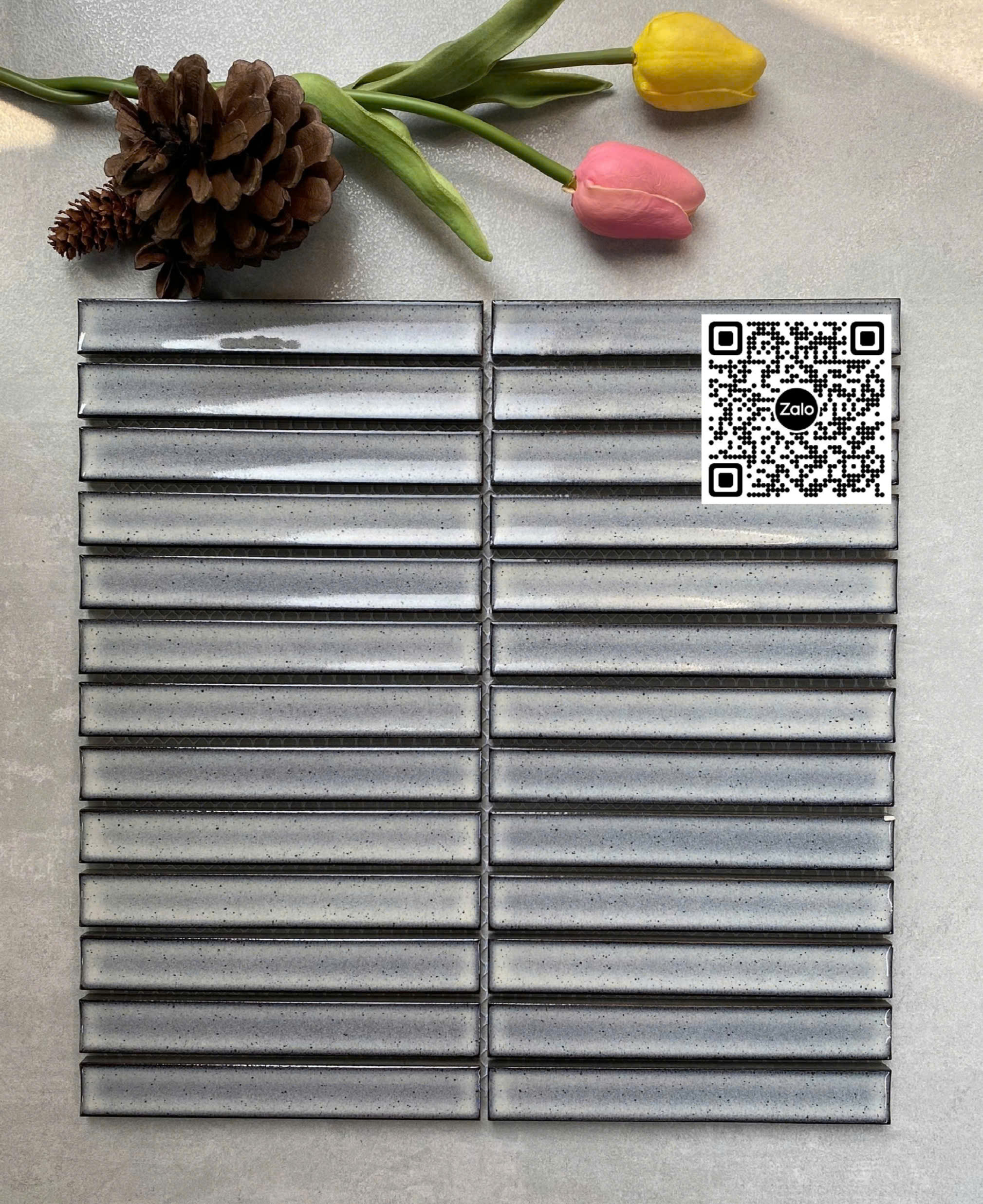 Phối Cảnh Gạch Mosaic Que Đũa 284x296 Ốp Dán Trang Trí màu xám nhạt