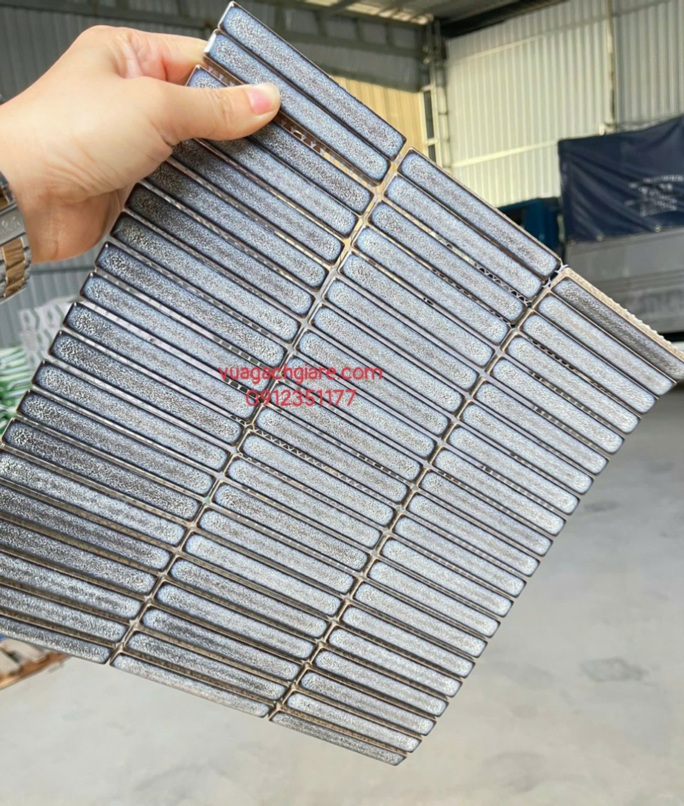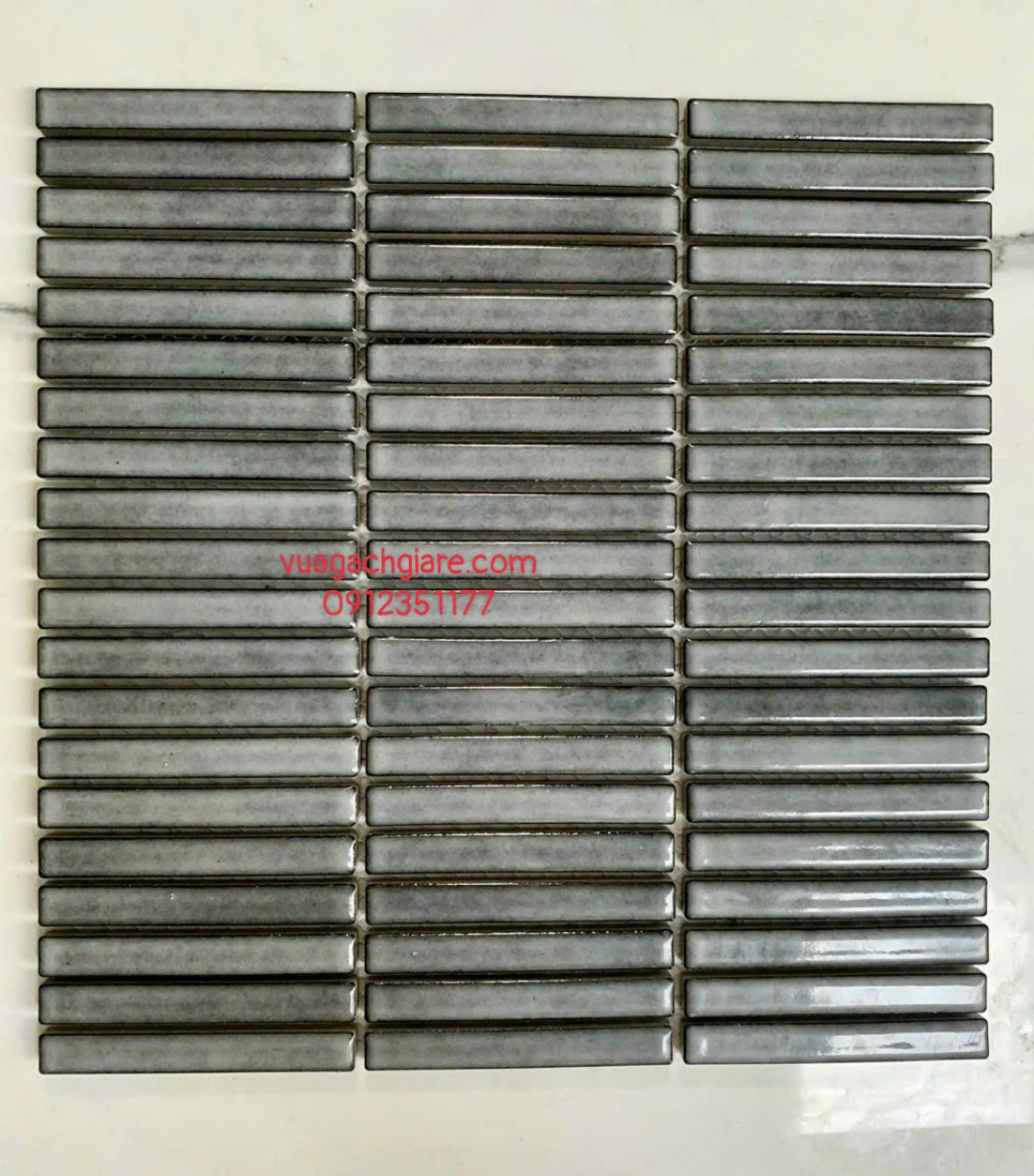 Gạch Mosaic Que Đũa Nhỏ Trang Trí màu xám men rạn
