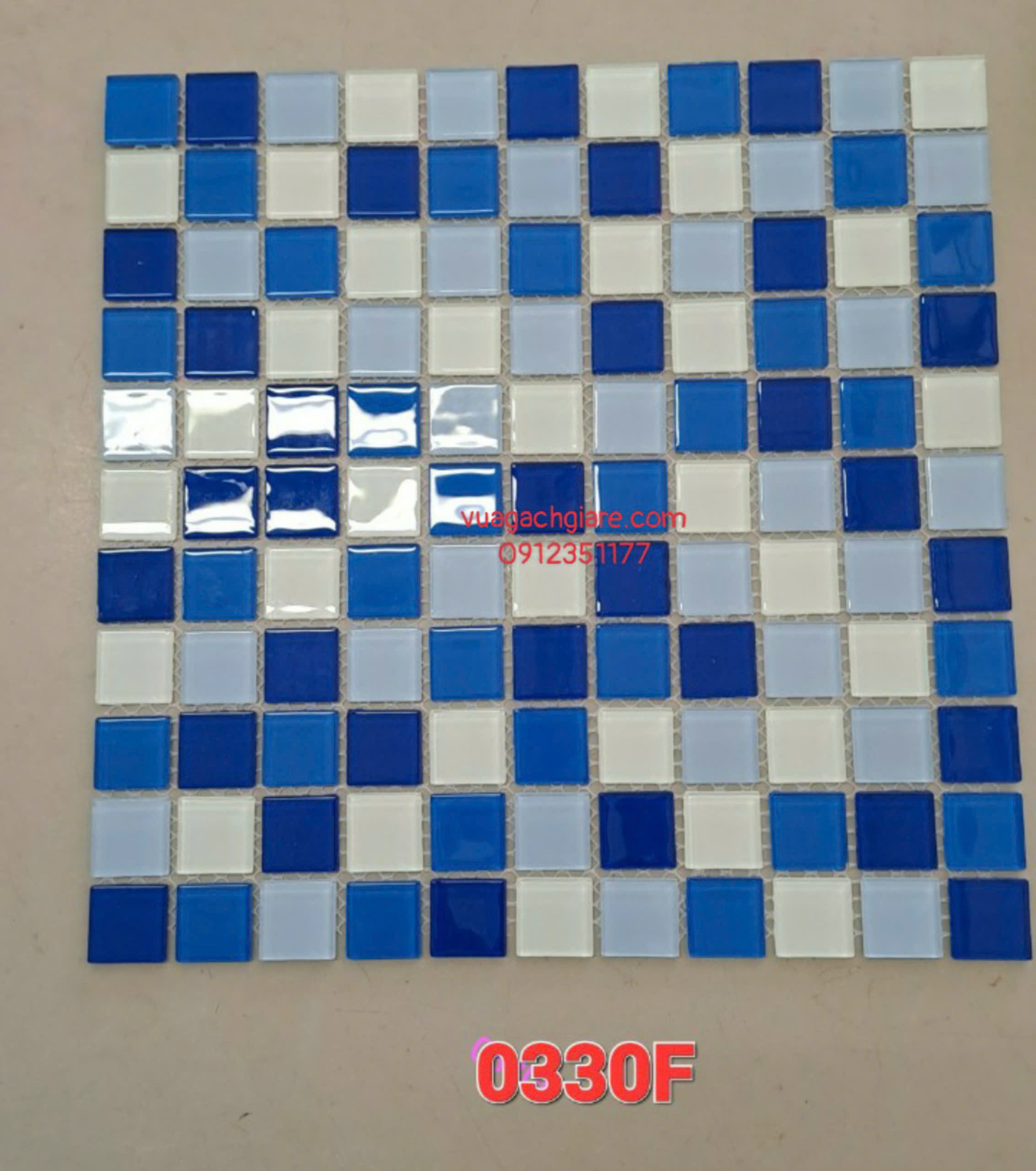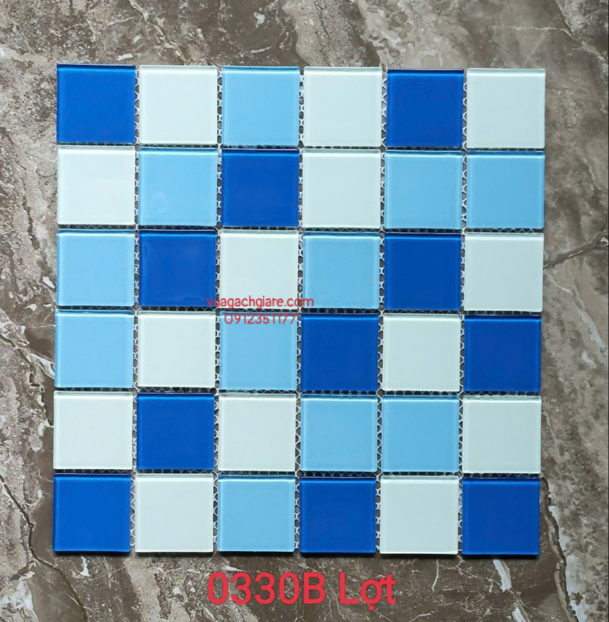 Gạch Mosaic Thuỷ Tinh Giá Rẻ trắng xanh dương đậm nhạt
