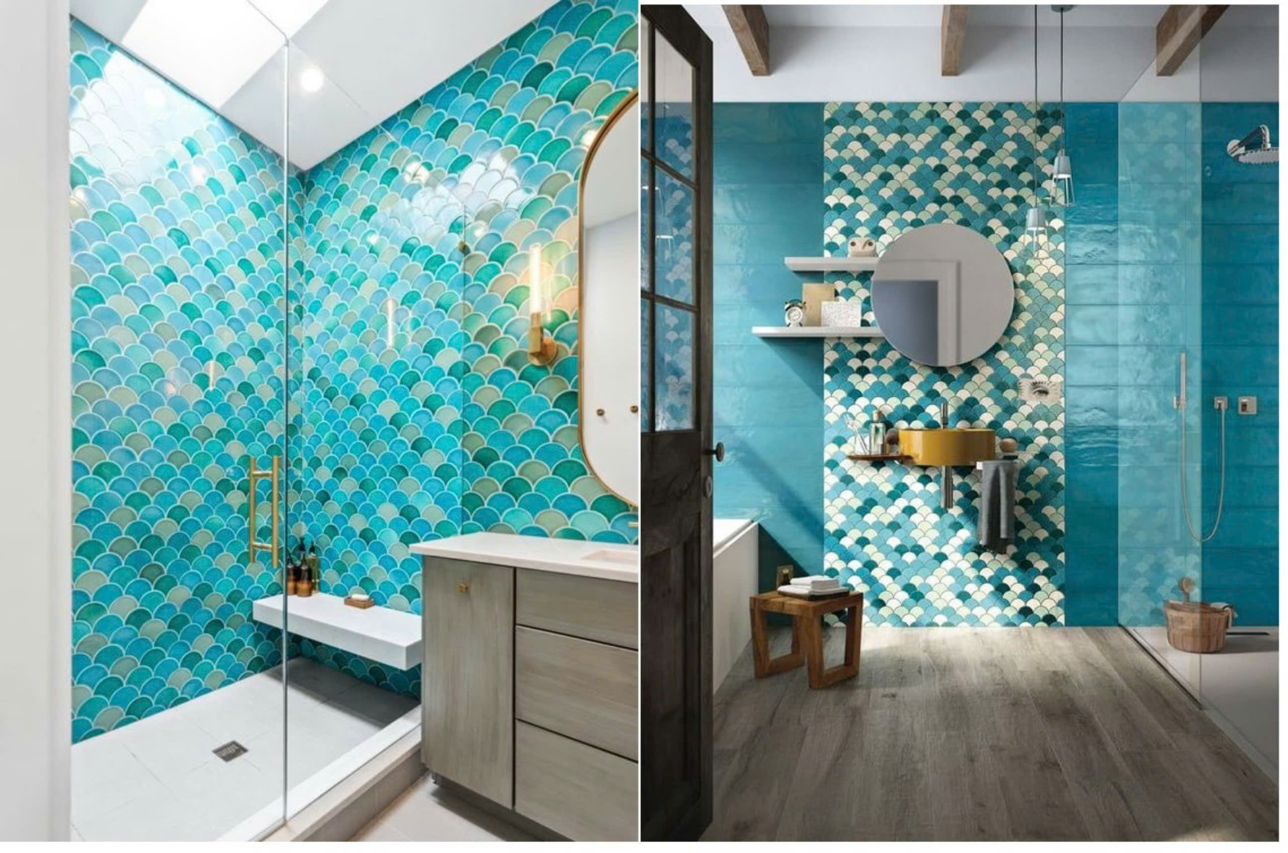 Phối Cảnh Gạch Mosaic Thuỷ Tinh Vỉ 30x30 vảy cá màu xanh dương