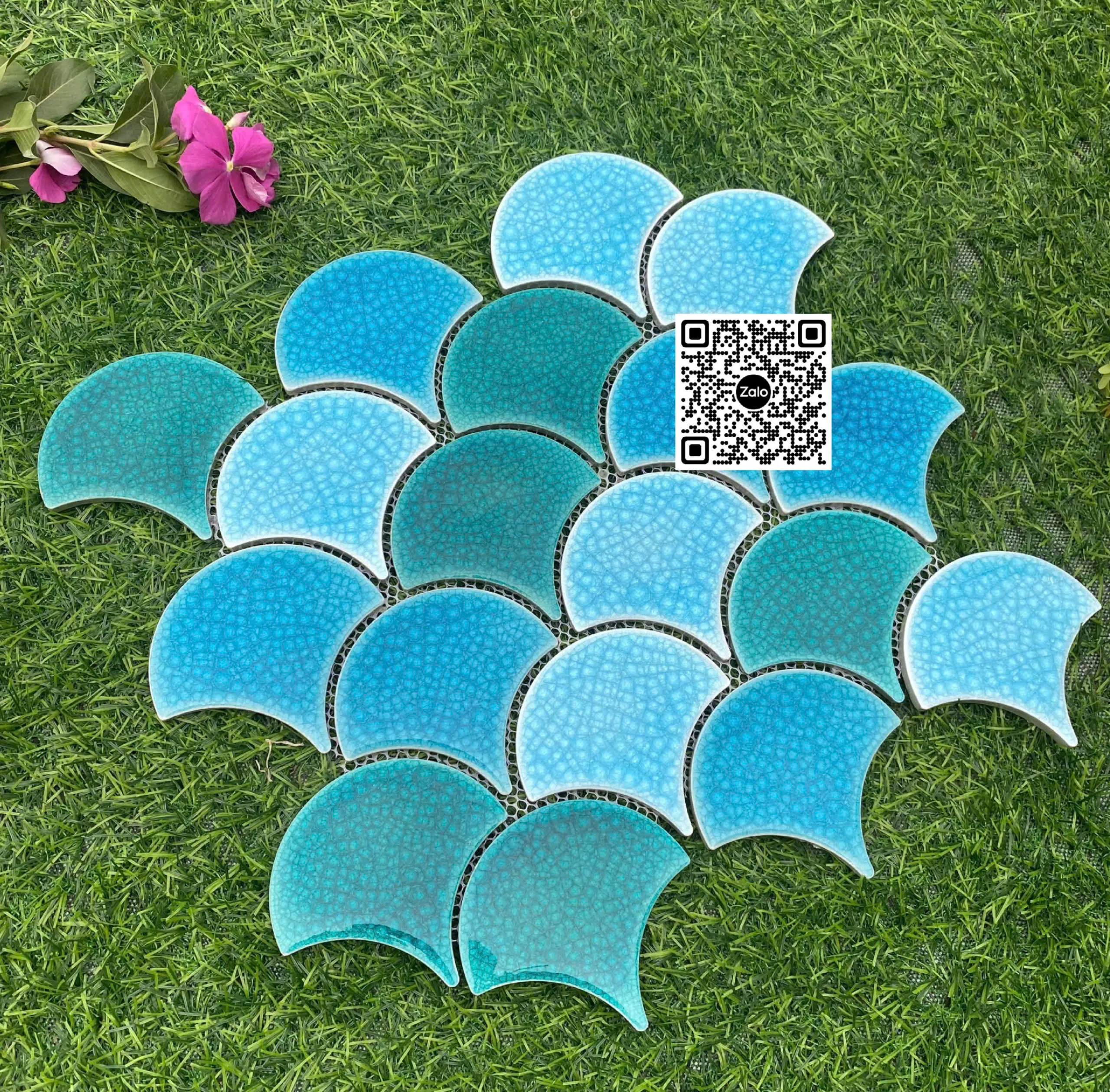 Gạch Mosaic Vảy Cá 30x30 Ốp Dán Trang Trí màu xanh dương men rạn