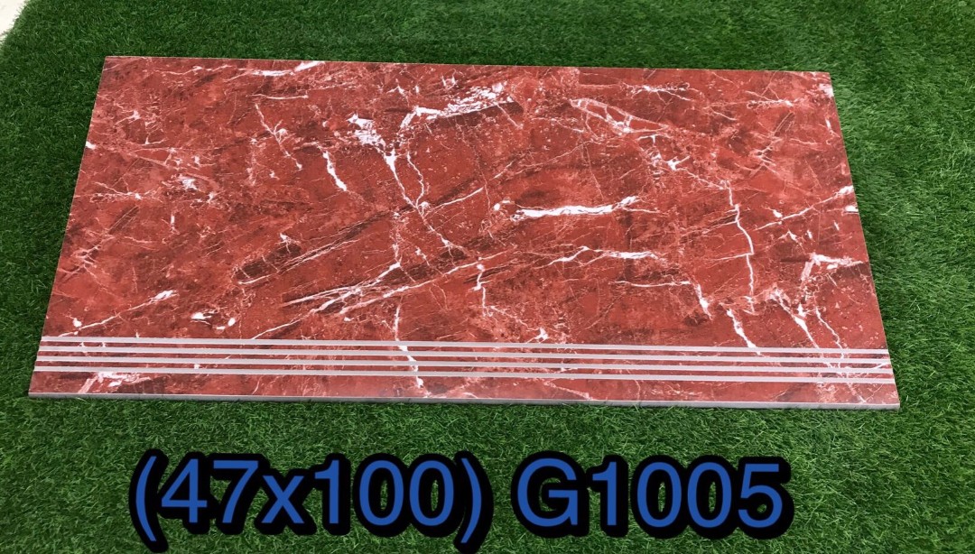 Hình ảnh gạch đá ốp lát bậc cầu thang đỏ vân trắng