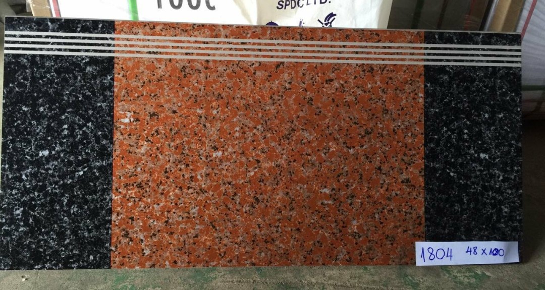 Hình ảnh gạch đá ốp lát bậc cầu thang giả đá hoa cương đỏ viền đen