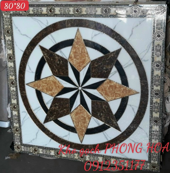 Gạch Đá Chiếu Nghỉ Cầu Thang Khắc Kim 80x80 họa tiết ngôi sao