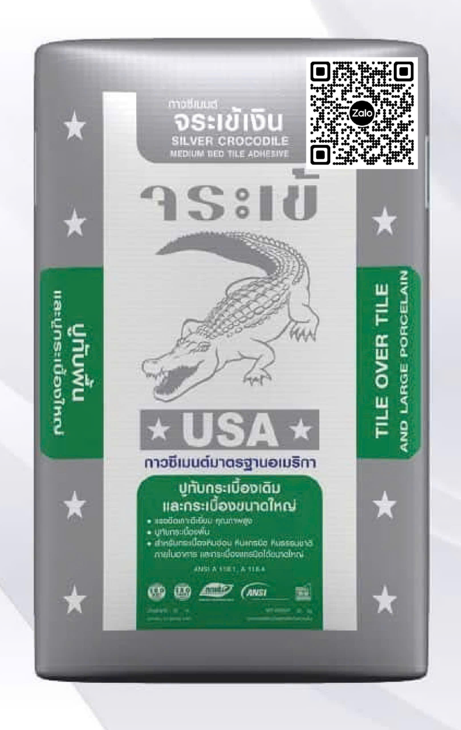 KEO DÁN GẠCH SILVER CROCODILE - dòng keo dán gạch tiêu chuẩn được nhập khẩu từ Thái Lan. Keo Dán Gạch Silver Crocodile được dùng để ốp tường, lát nền cho phòng khách, phòng ngủ, bếp, toilet, sân trước sau, sân thượng, ... cho Không Gian Nội Ngoại Thất của công trình nhà ở, nhà phố, chung cư, văn phòng, ... công trình thương mại quán cafe, nhà hàng, khách sạn, ....