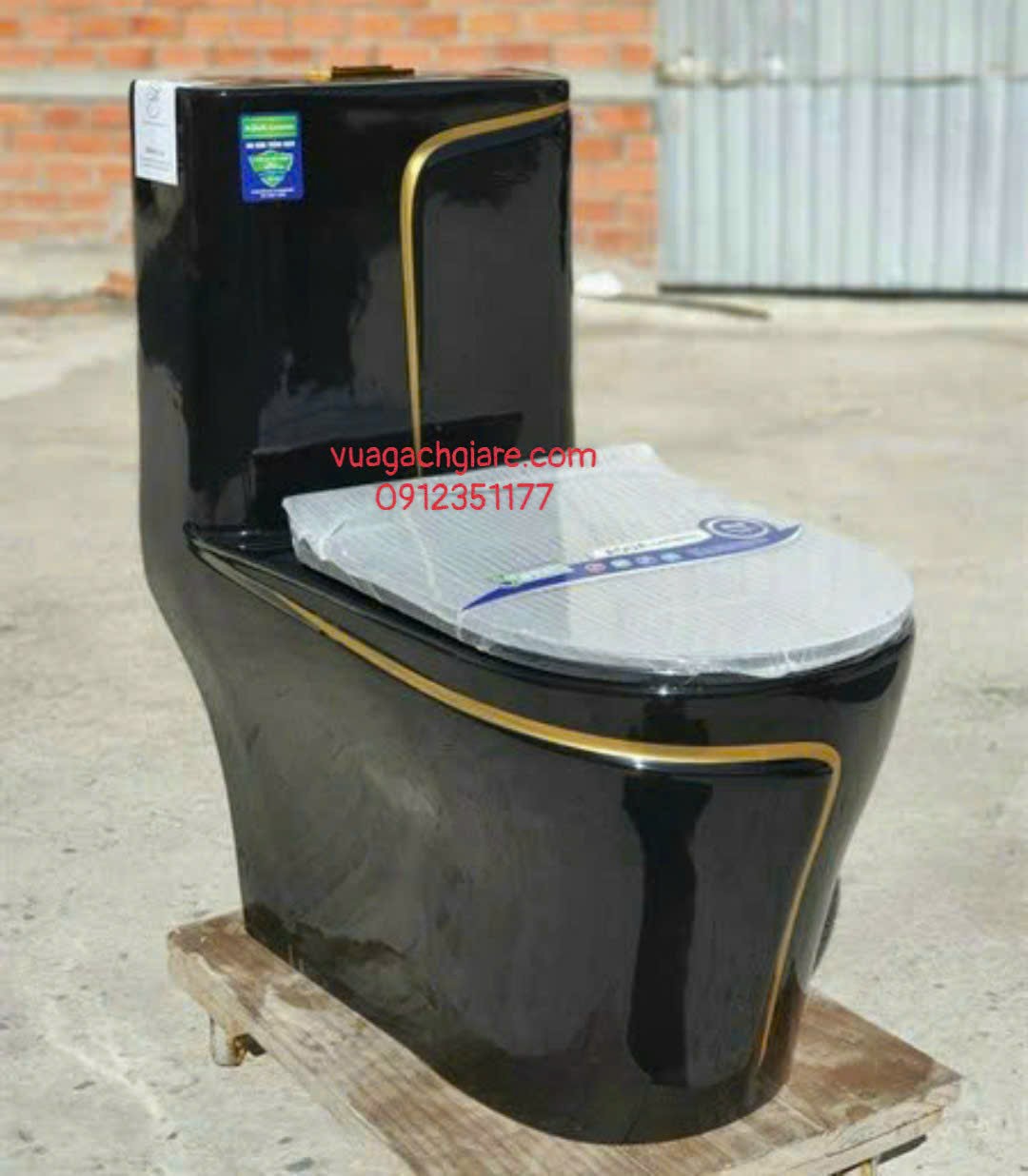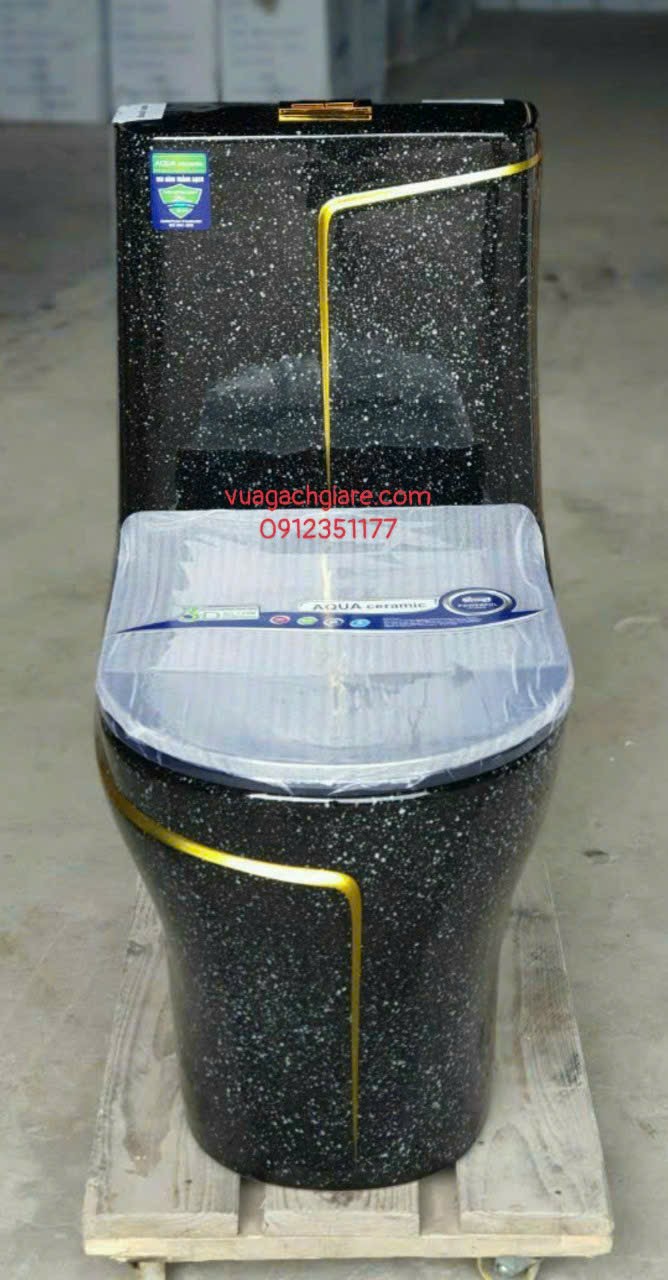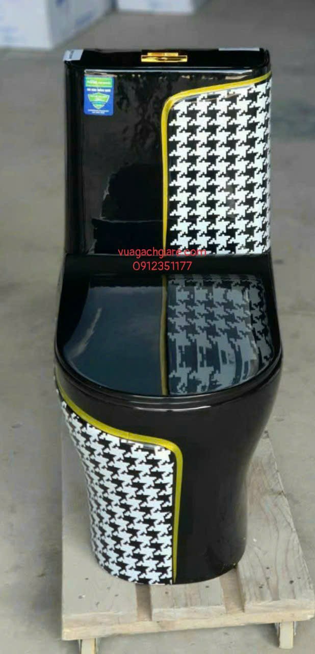 Bồn Cầu Liền Khối màu đen kim sa viền vàng