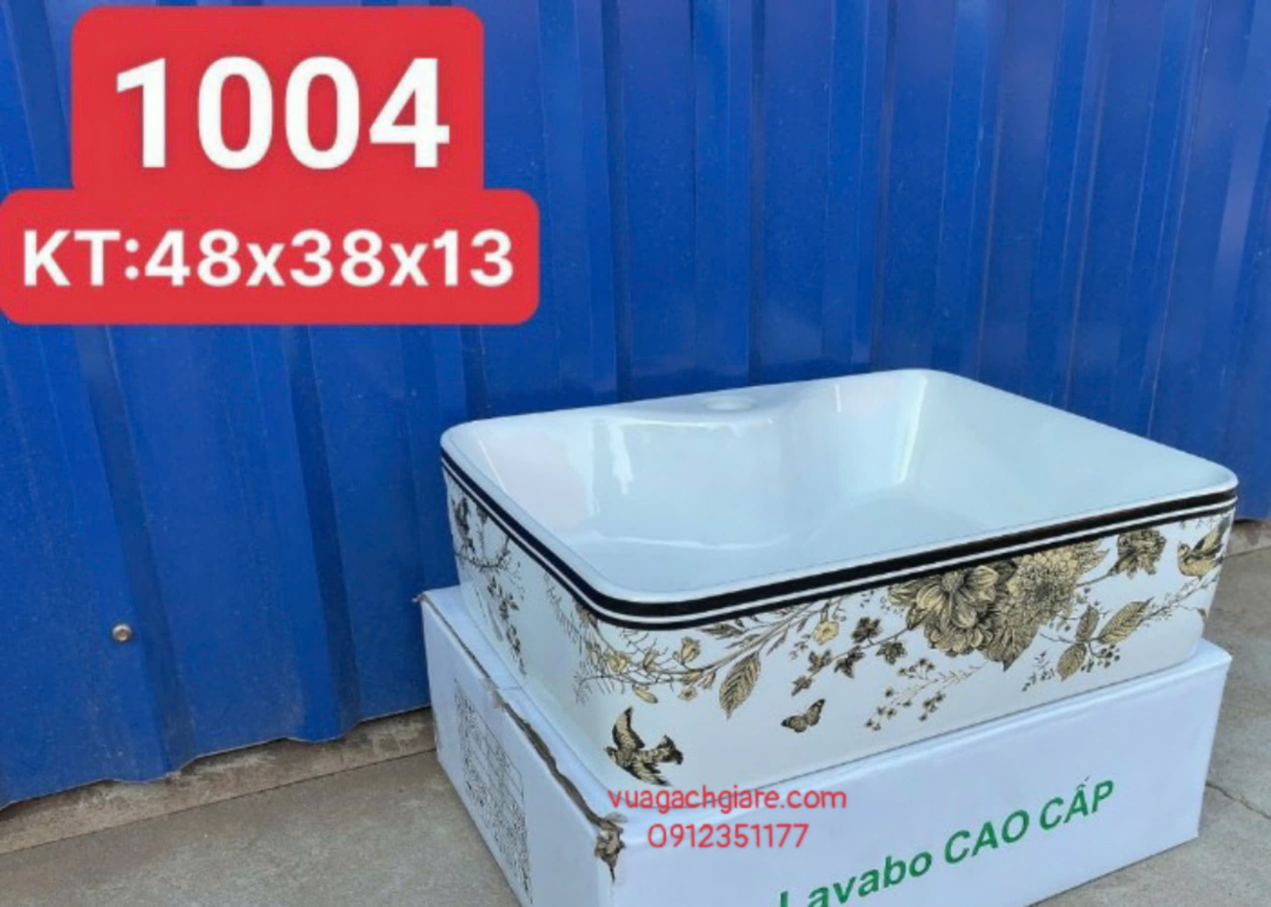 Chậu Lavabo Chữ Nhật Giá Rẻ hoạ tiết cành hoa