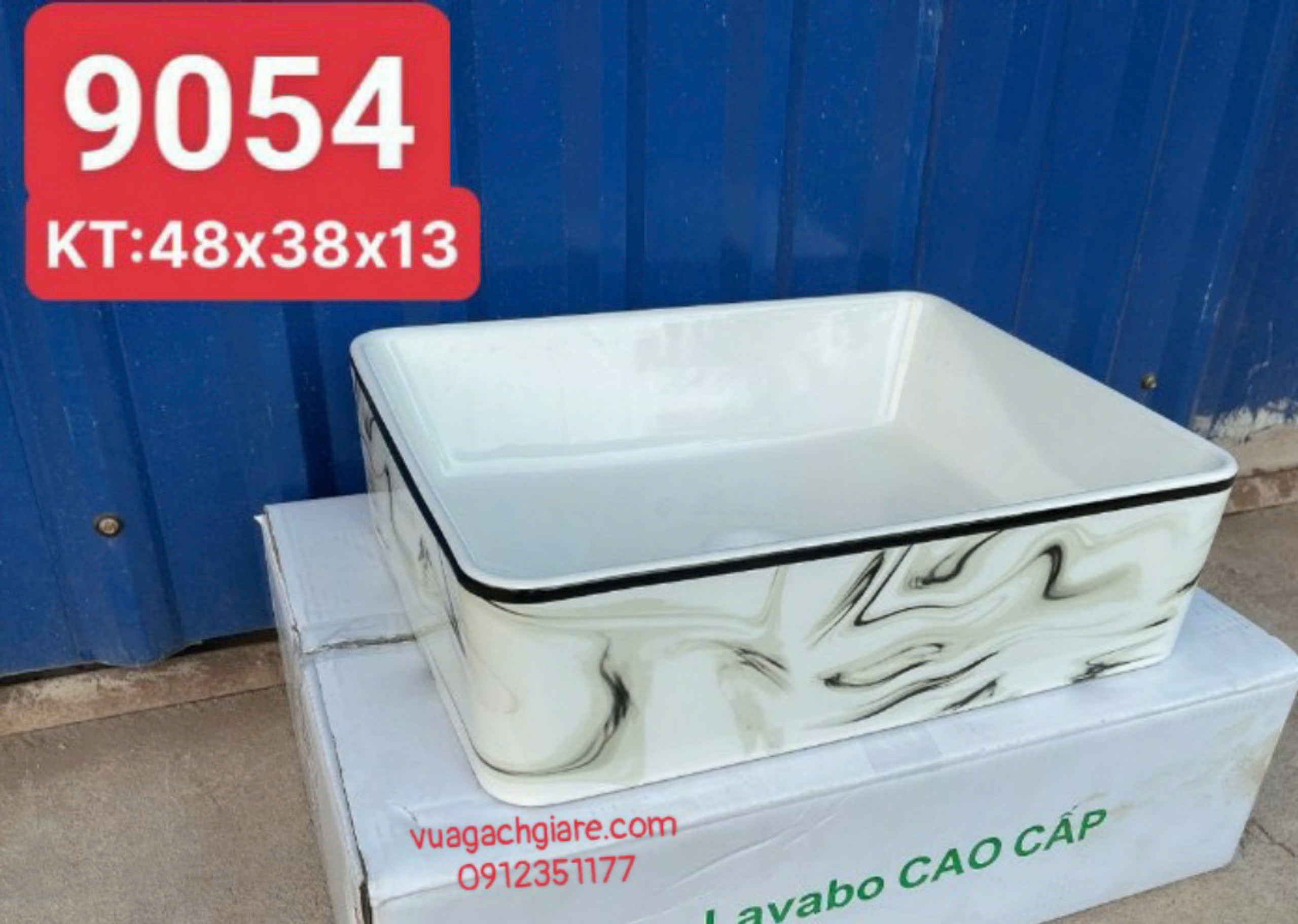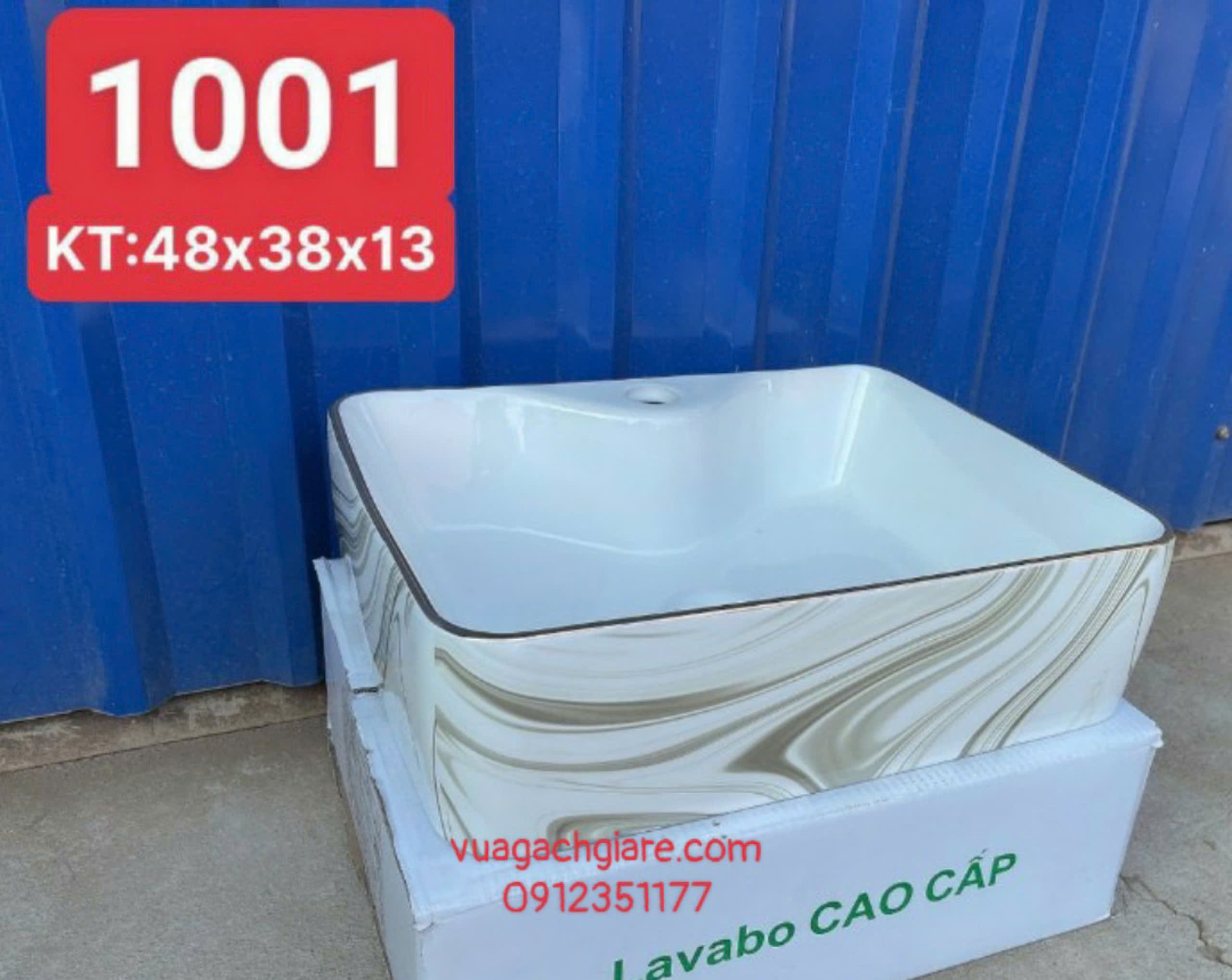 Chậu Lavabo Chữ Nhật Giá Rẻ trắng vân mây